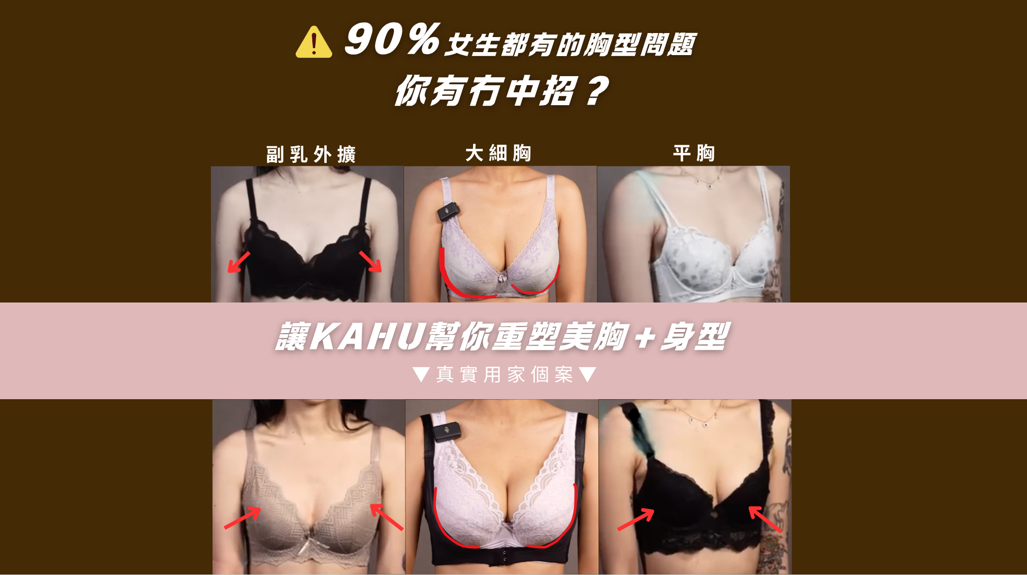 大多數胸型問題都因為長時間穿錯內衣,胸部失去支撐導致。只要選對內衣和穿戴方式正確,胸型都可以見到明顯改善!