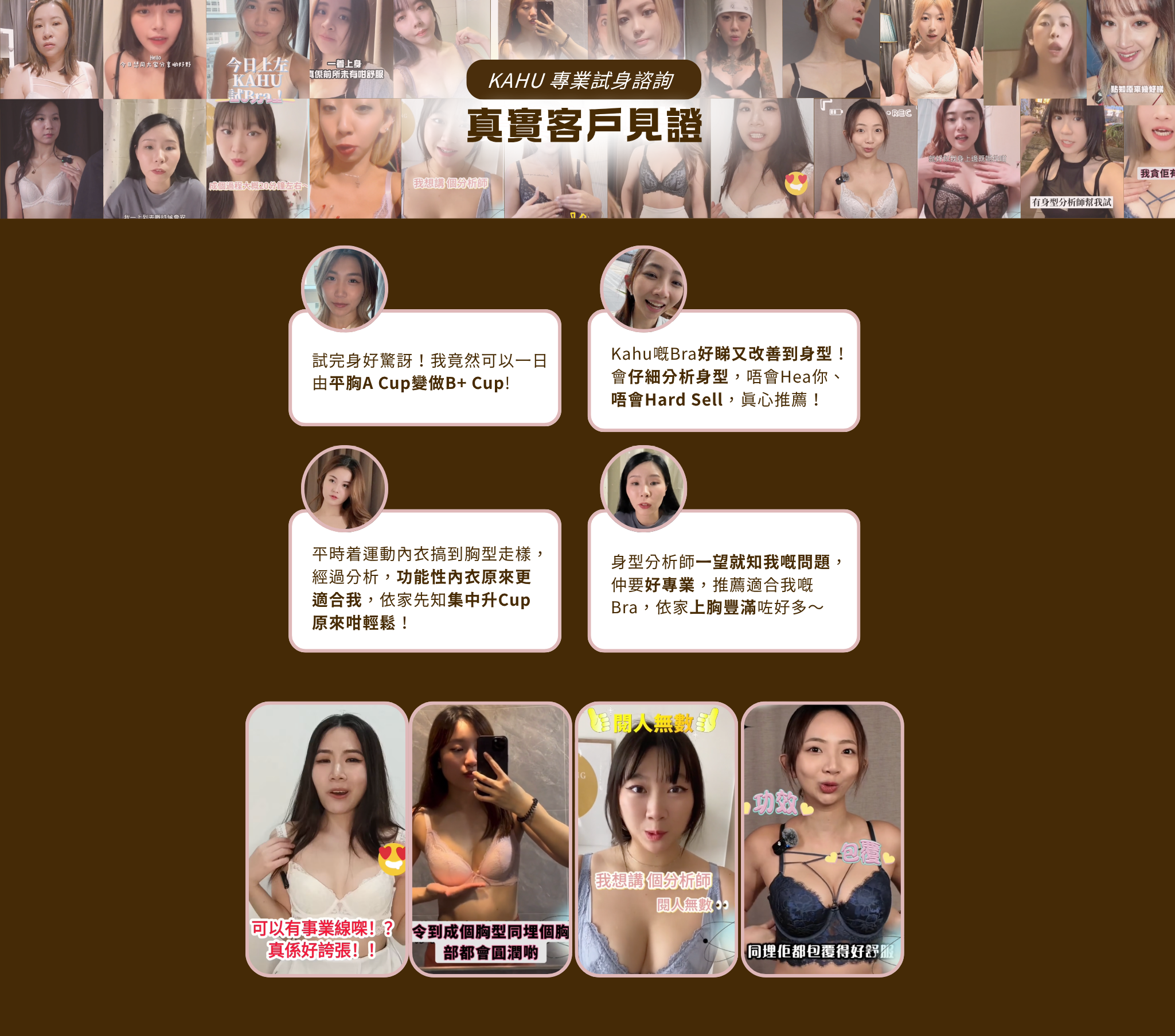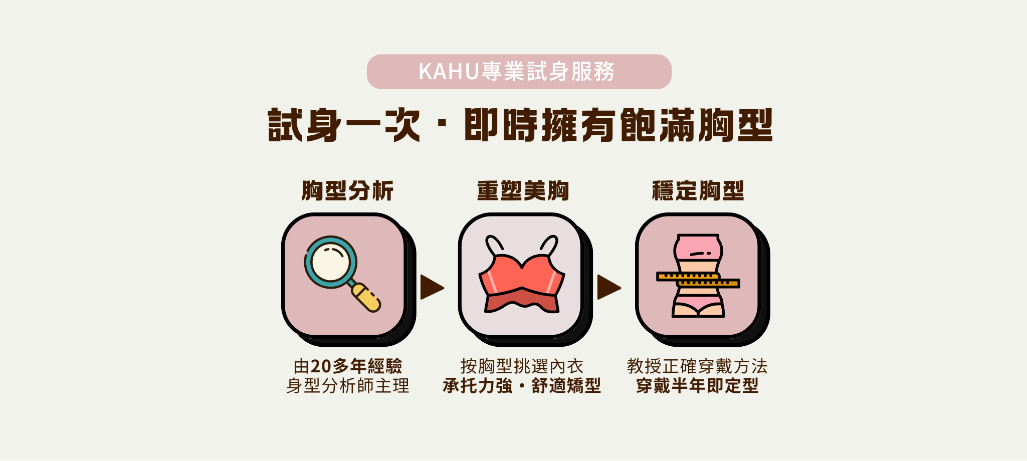 每個人的胸型都不同,而且每件內衣設計和剪裁也不一樣。只看尺寸,很難找到真正合適的內衣。現場試身,才能準確判斷問題並即時調整!
