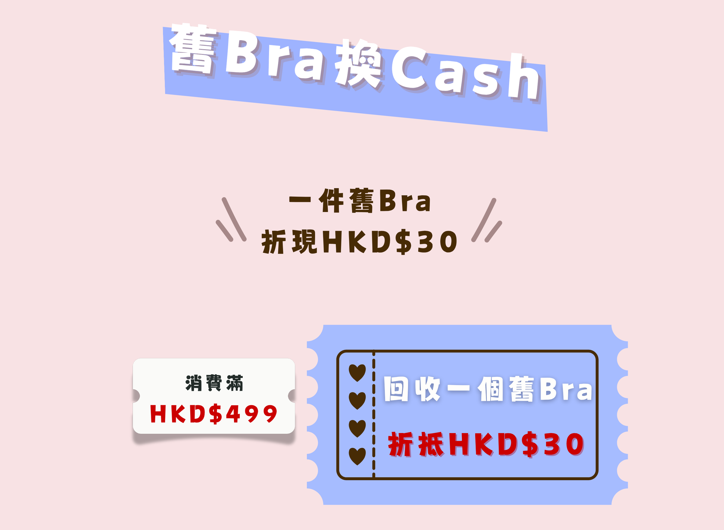 5. 舊bra換新優惠需要將舊bra交予回收,方可享用優惠(上限3個)